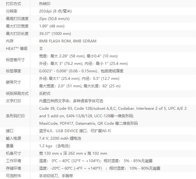 便攜式熱轉印打印機詳細參數